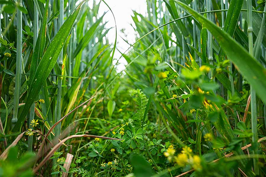 Regenerative Landwirtschaft setzt auf die Vielfalt von Pflanzen und ihren Wurzelsystemen durch einen dauerhaften und vielfältigen Bewuchs, da die Wurzelausscheidungen den wichtigsten Beitrag zum Humusaufbau leisten und die Bodenbiologie „füttern“. Weil ein aktiveres Bodenleben als Gegenspieler zu phytopathogenen Pilzen auftritt, sind eventuell auch weniger Pflanzenschutzmittel erforderlich. Ein wichtiger Baustein für die ganzjährige Durchwurzelung der Böden sind Zwischenfrüchte. Sie schützen den Boden vor Erosion, bauen organische Substanz auf, fördern die Bodenbiodiversität und binden im Fall von Leguminosen Stickstoff. Das macht sie zu einer tragenden Säule der Regenerativen Landwirtschaft.